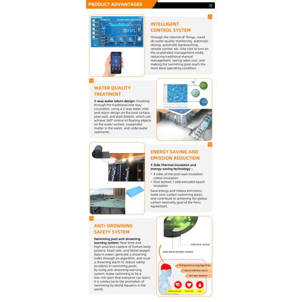 Features : Fast Construction And Easy To Use Convenient Disassembly And Assembly Intelligent Control System One-piece self-stabilizing structure 3-Way Water Return Design 5-Side Thermal insulation And Energy-Saving Technology Anti-Drowning Safety System All Spare Par